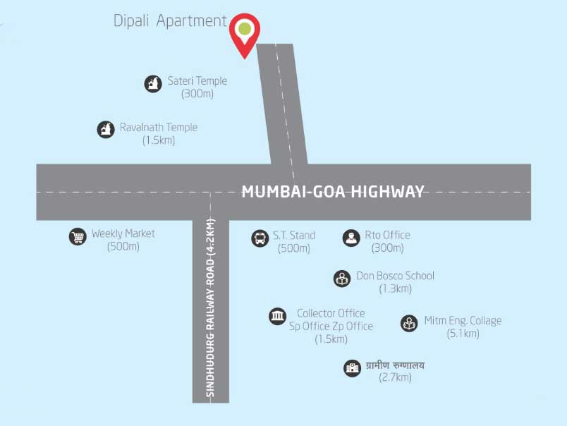 Dipali Apartment is the first residential project in Oros, Sindhudurg by Savitri Builders. Oros is situated along the Konkan coastal area, which is famous for its serene and beautiful beaches, temples and historical forts. One can imagine the tranquillity and peace that you can experience at such a location, making it a perfect choice for a second home too.